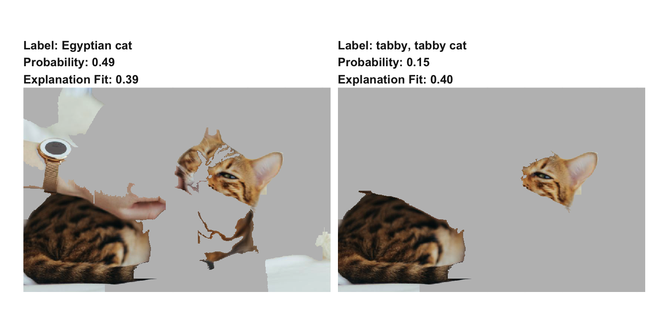 This release represents an important milestone for lime in R. With the addition of image explanations the lime package is now on par or above its Python relative, feature-wise. Further development will focus on improving the performance of the model, e.g. by adding parallelisation or improving the local model definition, as well as exploring alternative explanation types such as anchor .