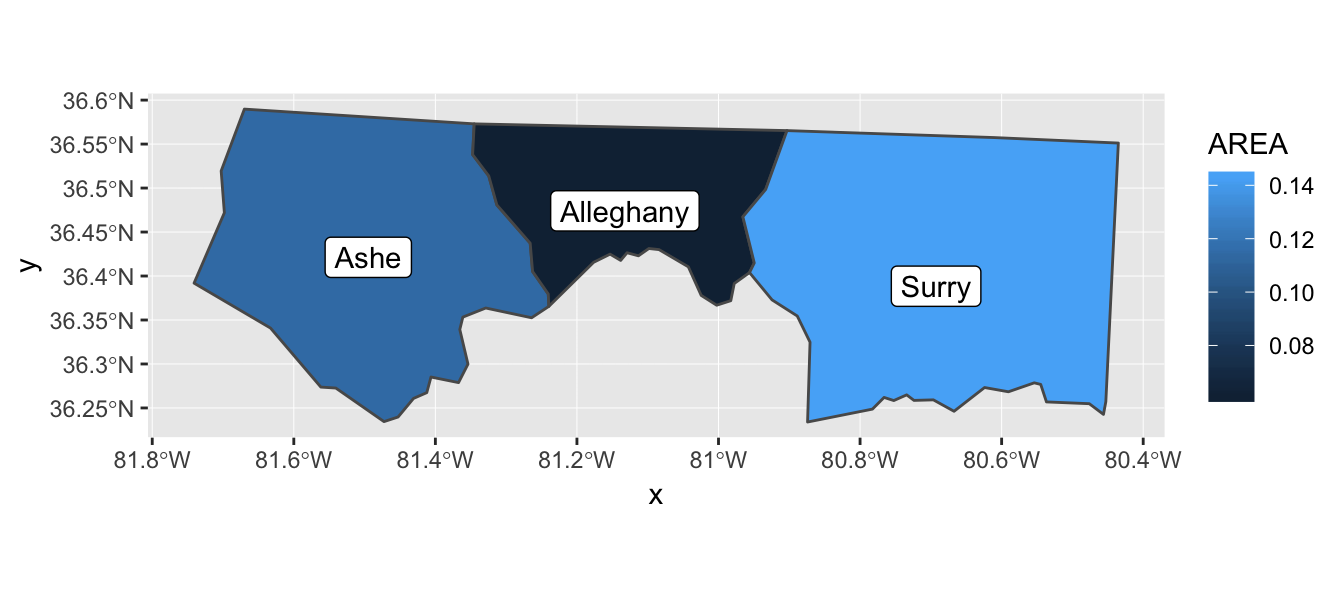 Two new geoms, geom_sf_label() and geom_sf_text(), can draw labels and text