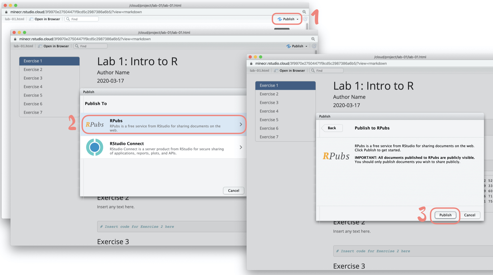 - Publish to RPubs: RPubs is a free publishing service for R Markdown documents. Before you go down this route, note that all documents published to RPubs are publicly visible, so this option might not work for all types of assignments and you need to consider compliance with